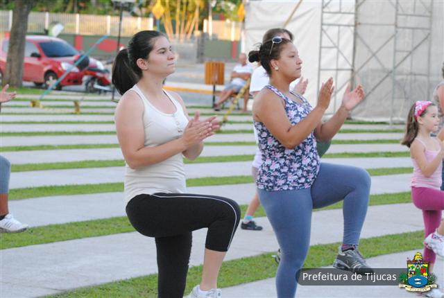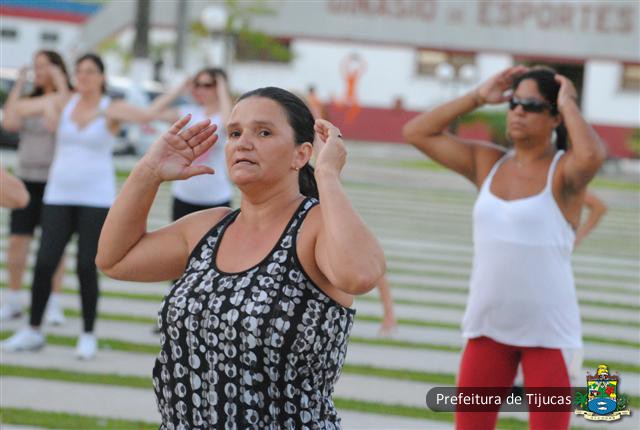 Elas participam do projeto ?Mexa-se: Ginástica na Concha? que acontece todas as noites a partir de uma iniciativa da Secretaria Municipal de Cultura, Juventude e Direitos Humanos.