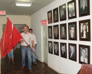 Em seguida o Prefeito Elmis e o Vice Rogerinho percorreram todo o prédio levando a Bandeira a cada uma das salas da Prefeitura a fim de pedir proteção e bom ano de trabalho a todos.