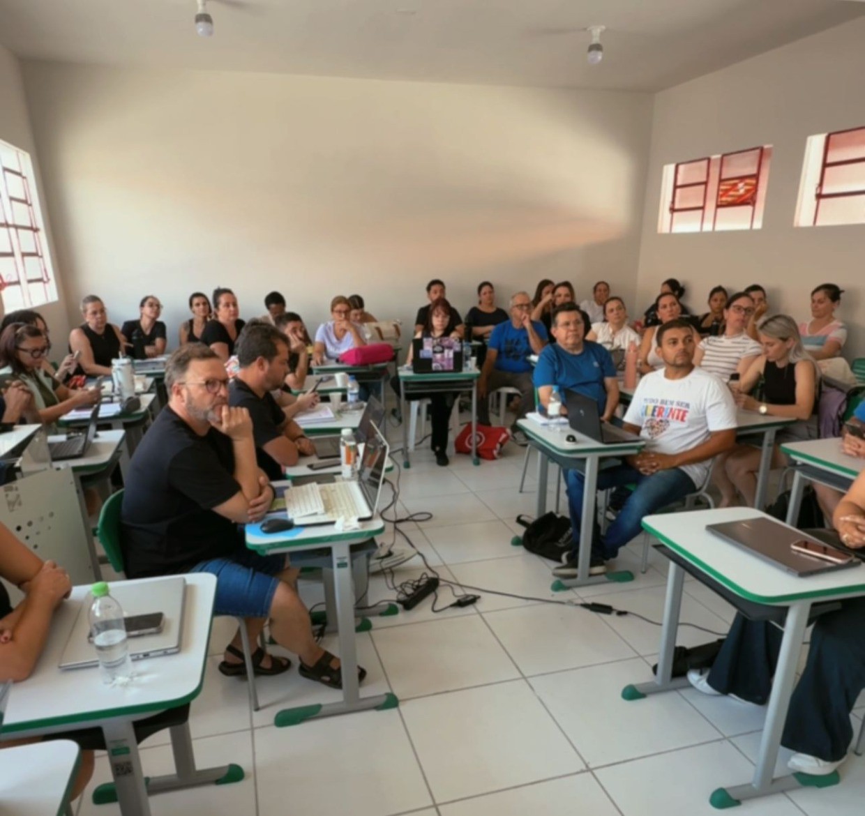 Os docentes também ressaltaram a relevância da formação continuada. Um dos participantes observou que a profissão exige atualização constante, destacando que o planejamento é essencial para que o professor não chegue à sala de aula despreparado. Durante o encontro, os professores organizaram o planejamento anual dividido por trimestres, estruturando conteúdos e estratégias. A palestrante avaliou positivamente a iniciativa do município, enfatizando que a rede tem atuado de forma coerente ao oferecer suporte para a formação profissional.