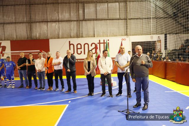 O prefeito de Tijucas, professor Eloi Mariano Rocha, bem como secretários e vereadores estiveram presentes na cerimônia. Após a fala das autoridades, teve início uma noite de jogos importantes para o município: final do Campeonato Municipal de Futsal, categoria Sub-14; abertura do Campeonato Municipal de Futsal Adulto, Séries A e B.